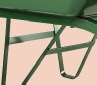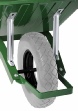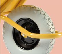 Brancard cornières soudées 40 x 40 x 4 mm, pieds galvanisés, avec supports et renfort de caisse. Roue gonflée Ø 400 mm (PF 32), fixation coussinets plastiques, jante métal à rayons. Poignées ergonomiques. Butoir amovible en option.