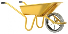 Brouette spéciale pour les travaux de rénovation, grâce à sa caisse étroite et profonde, passant par toutes les portes.