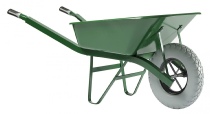 Brouette cornière destinée aux travaux lourds et intensifs. Charge utile 200 kg. Caisse peinte 90 l, épaisseur 1 mm.