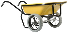 Caisse peinte 230 l, épaisseur 1,5 mm, très grande capacité de charge. Châssis tube peint Ø 32 mm formant butoir et jonc de soutien de la caisse. Roues gonflées Ø 400 mm (PF 39), roulements à rouleaux, jantes métal à rayons.