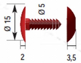 Longueur totale : 22 mm. Longueur utile de 0 à 18 mm. Diamètre de la tête : 15 mm. Diamètre du pas : 5 mm.