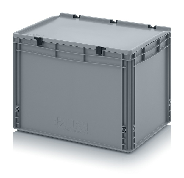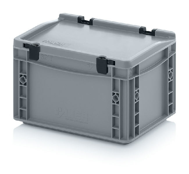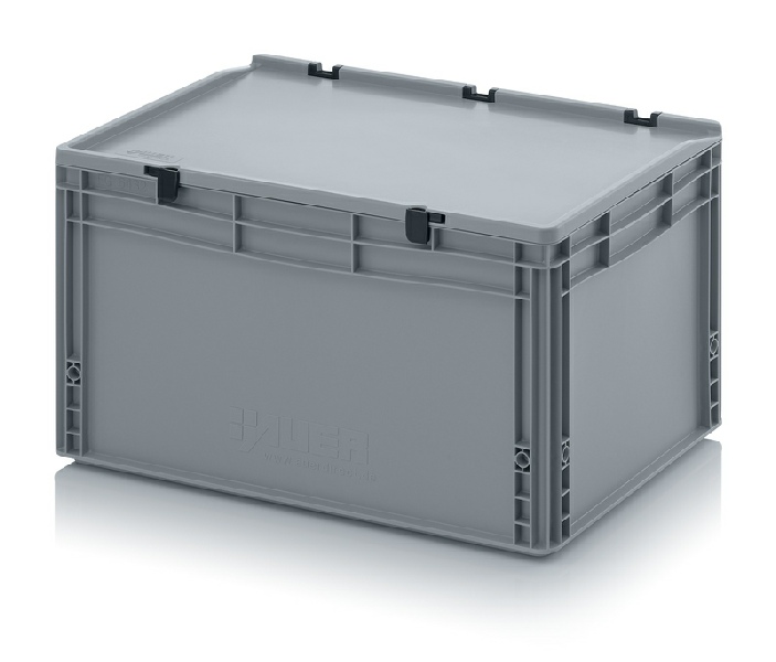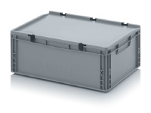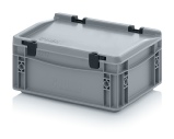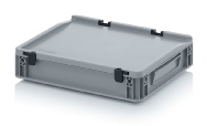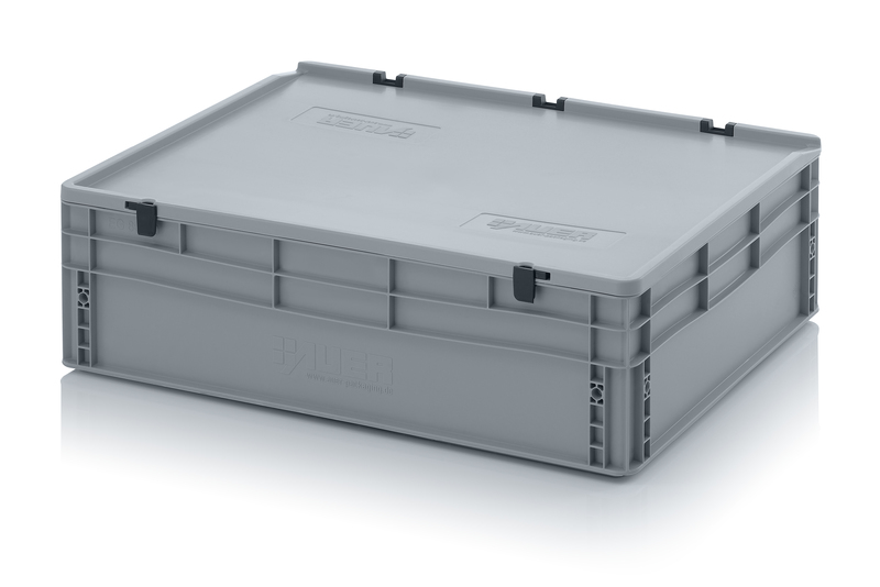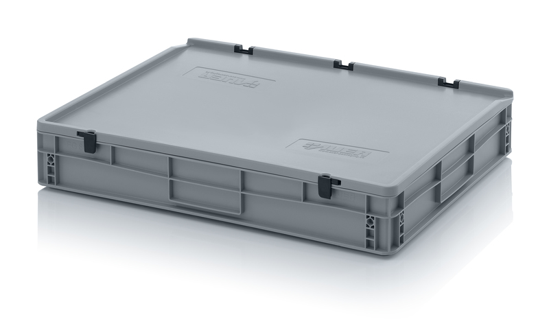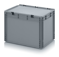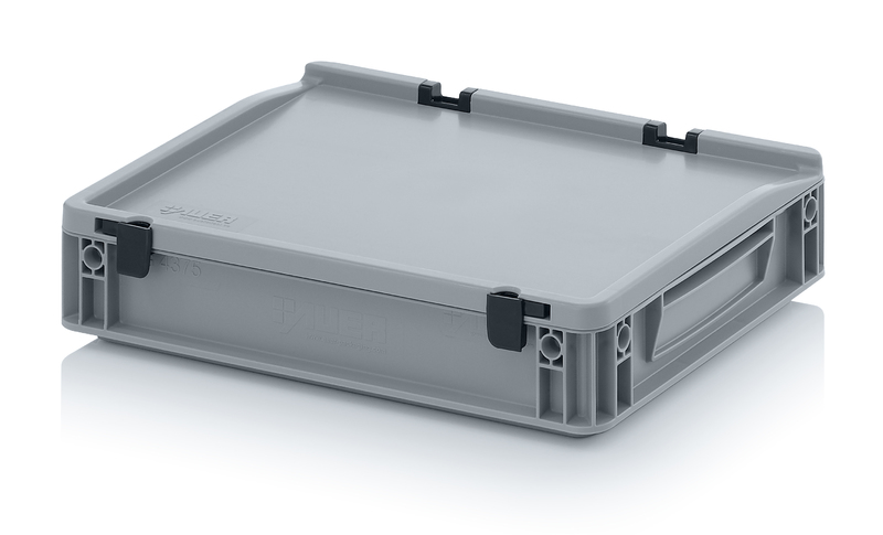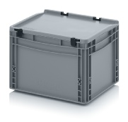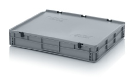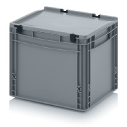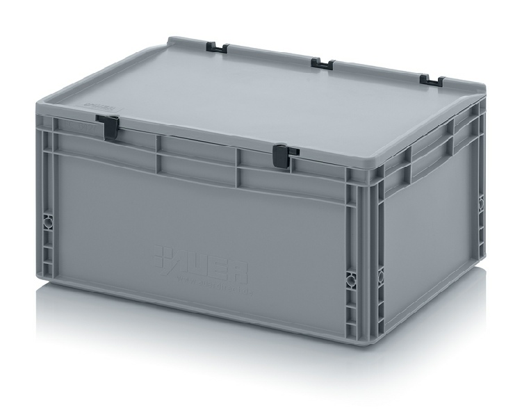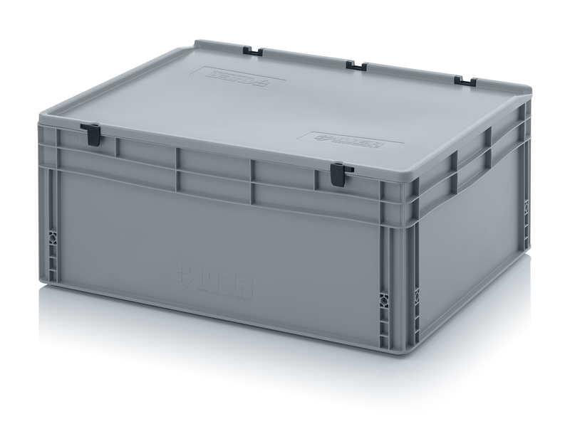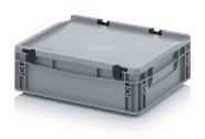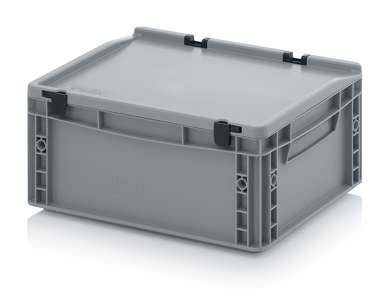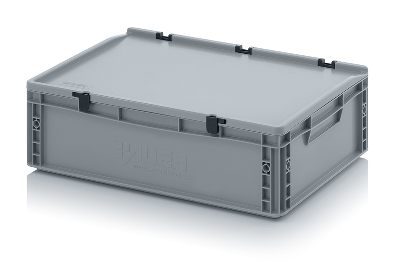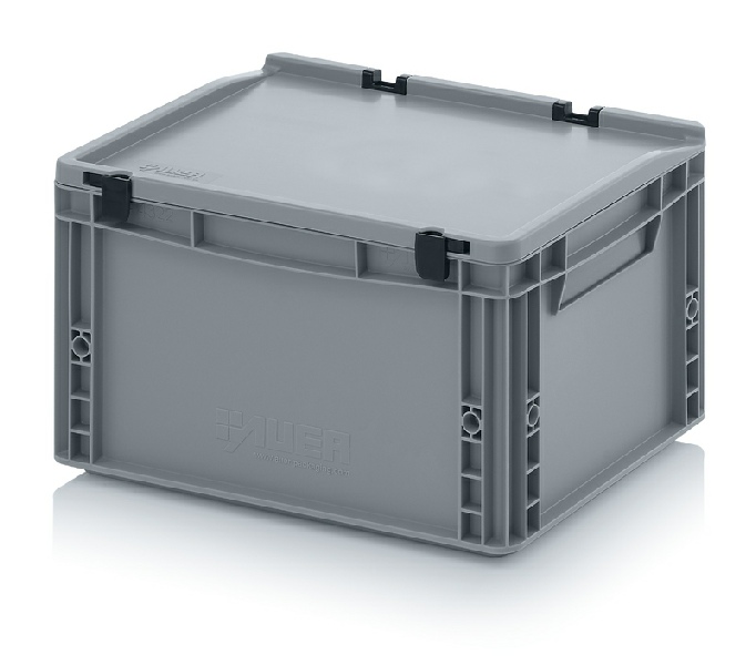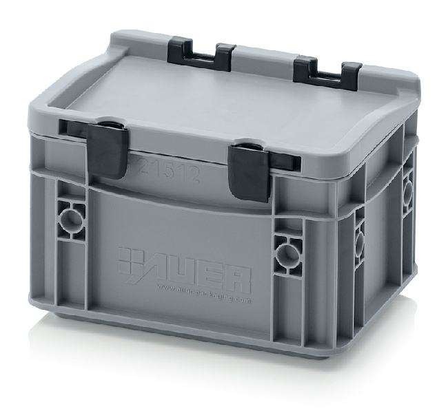 AUER Packaging propose ici un bac Euro avec couvercle à charnières facile à manipuler, pour une fermeture en un tour de main.