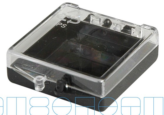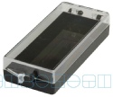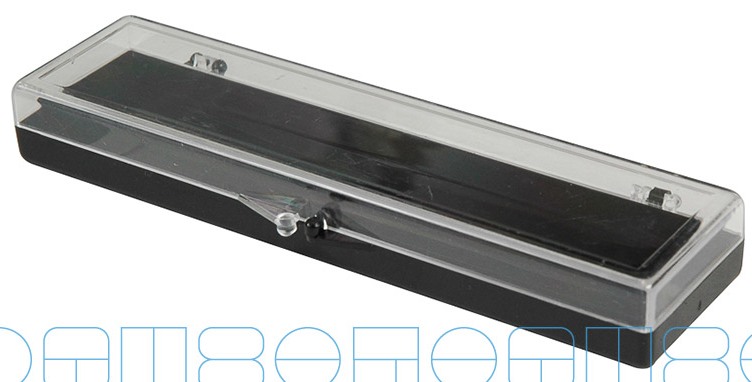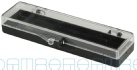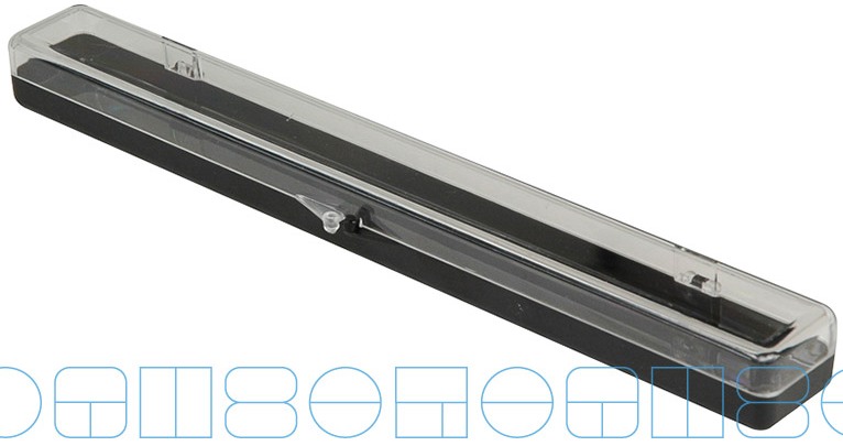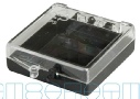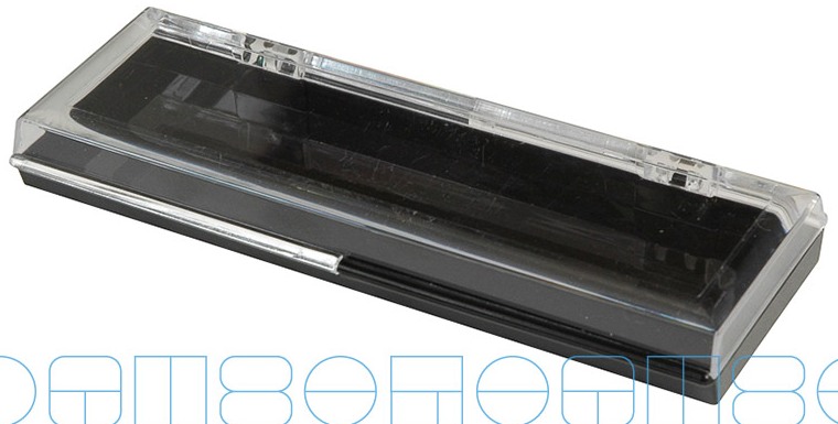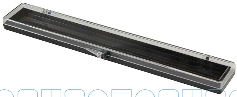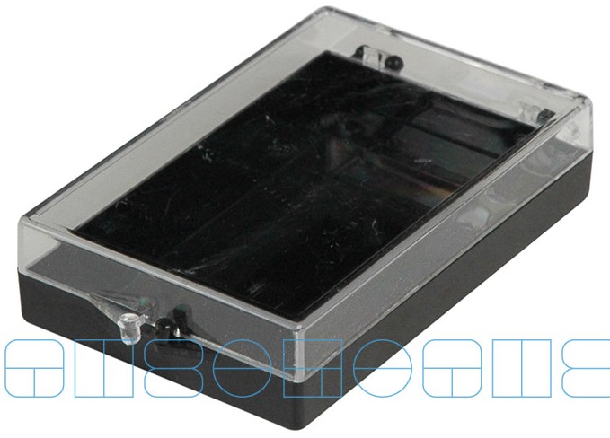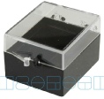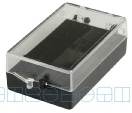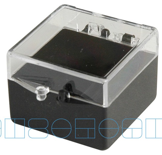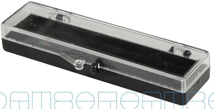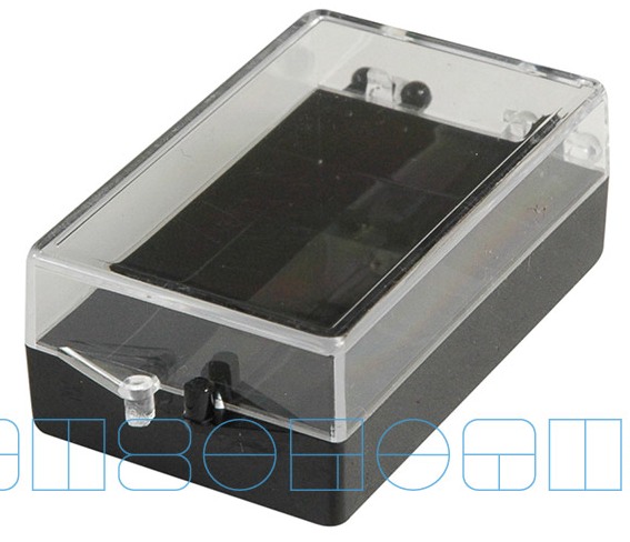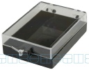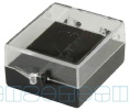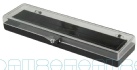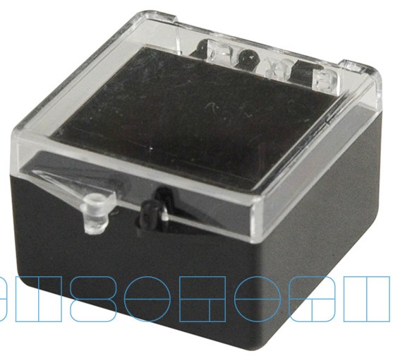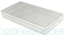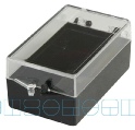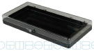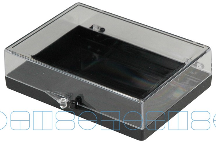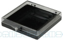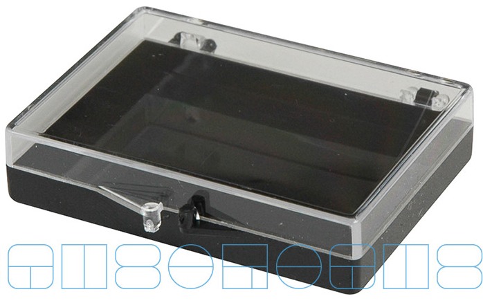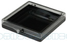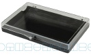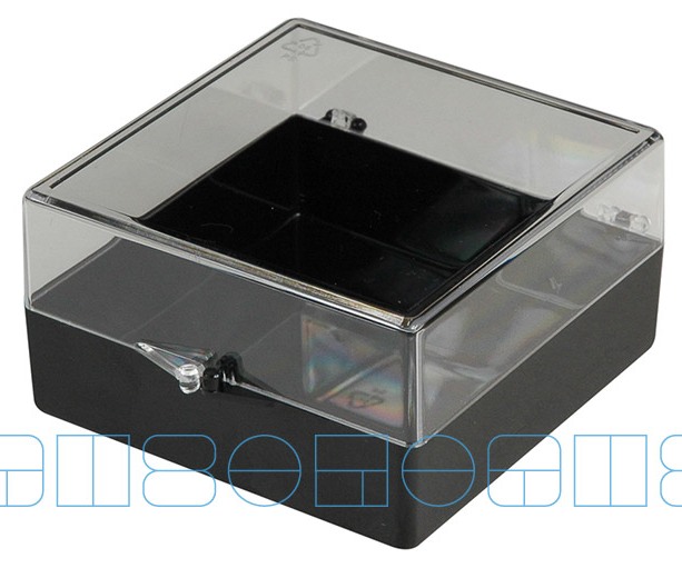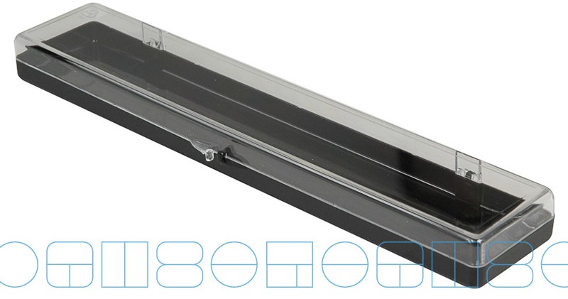 Boîtes à charnières à boules en polystyrol. Le couvercle est transparent, la partie basse est noire.