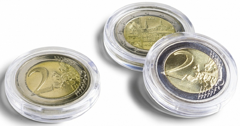 Les capsules sont en plastique de haute qualité – anti-rayures. À fermeture solide et en même temps facile à ouvrir. Disponibles pour les monnaies de 14–41 mm Ø.