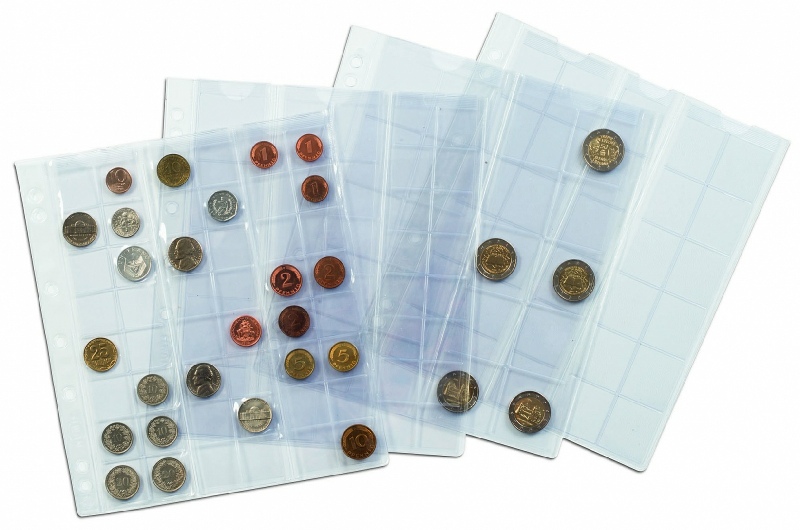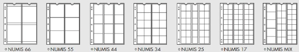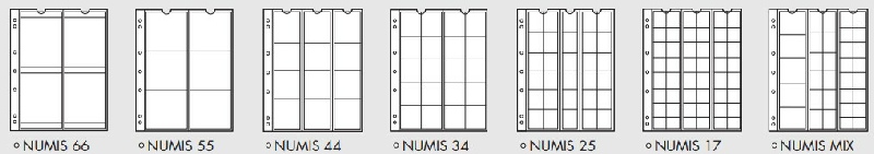 NUMIS 17– 66 : Recharges transparentes avec des bandes d’insertion sans plastifiant acide pour stocker et protéger vos monnaies. Format des recharges : 193 x 217 mm.