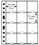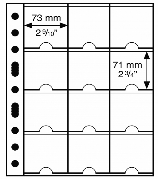 Pour 12 étuis carton XL (67 x 67 mm). Recharges transparentes pour monnaies, à classer dans une reliure GRANDE. Format extérieur : 242 x 312 mm.