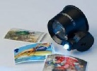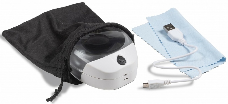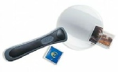 Lentille acrylique de qualité, sans bord et manche ergonomique au design moderne. Excellente optique. Diamètre de la lentille : 75 mm. Grossissement x 2,5. Alimentation à piles, x 3 piles bouton SR 54. Dans une housse en tissu doux pour la protection de la lentille.