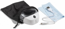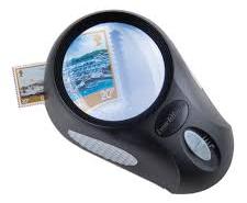 Loupe très pratique avec éclairage par LED. 2 lentilles : grossissement x 10 (Ø lentille 21 mm) et grossissement x 30 (Ø lentille 12 mm). Vision non déformée même sur les bords. Comprend une lampe UV pour le contrôle de timbres ou de billets de banques. Coque en plastique mat noir. Livrée avec piles (3 x LR1130). Format extérieur (étirée) : 45 x 100 x 23 mm (La/Lo/H).