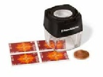 Loupe à fond clair avec éclairage LED. Lentille acrylique avec grossissement x 10. Pas de distorsion sur les bords.