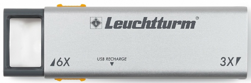 Loupe de poche extractible LED DUPLEX avec grossissement x 3 et x 6 Rechargeable LEUCHTTURM
