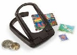 En plastique, avec échelle en cm/inch. Grossissement x 5. Surface visible : 29 x 25 mm. Repliable. S’ouvre automatiquement d’un doigt. Diamètre de la lentille : 23 mm. Eclairage par 1 LED. Mat noir. Format extérieur : 42 x 55 x 54 mm. Peu adapté à l’observation de monnaies.