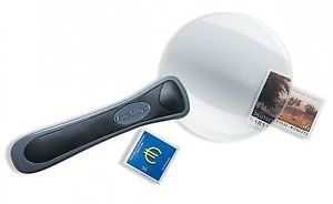 Ø 90 mm, grossit x 2. Lentille en acrylique de qualité supérieure à manche ergonomique, design moderne. Excellente optique. Housse de protection en tissu doux pour la lentille. S'utilise sans effort à cause de son poids minime. Idéale pour les collectionneurs de monnaies, de timbres et même pour le bricolage.