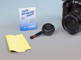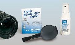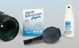 Papier nettoyant optique, peau de nettoyage et pinceau soufflant.