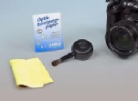 Liquide et papier nettoyants optiques, avec pinceau soufflant.