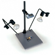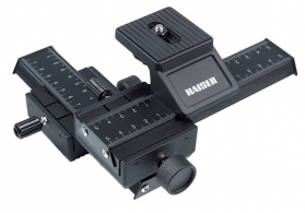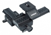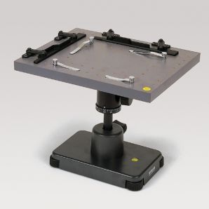 Réglage 2 axes. Course de réglage : 95 mm. Crémaillères micrométriques. Vis de blocage. Echelles millimétrées. Platine support boîtier en caoutchouc. Vis 1/4”