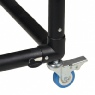 Structure en aluminium sur quatre roulettes avec freins. L’angle du fond est réglable.