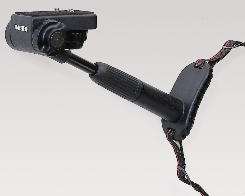 Crosse d’épaule et de poitrine pour appareils photo et camescopes. Plateau pivotant avec pas de vis 1/4”, blocage de sécurité. Longueur réglable en continu. Avec courroie ajustable.