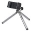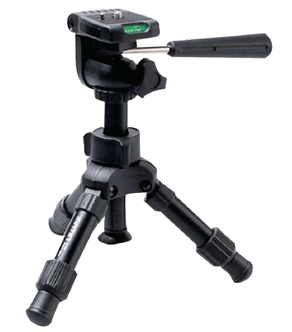 Avec jambes télescopiques trois sections et colonne centrale extensible. Tête panoramique 3D avec support boîtier inclinable. Hauteur : 18-30 cm, poids admissible : 2 kg.