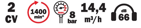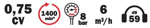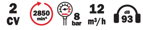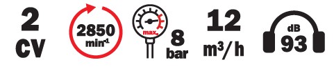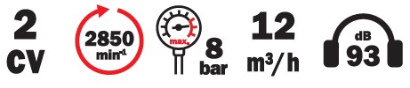 Auto lubrifié (sans huile). 8 bars max, avec manomètre.