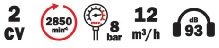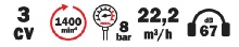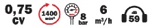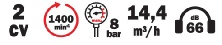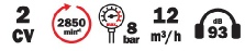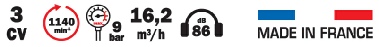 Marche/arrêt automatique par pressostat, 8 bars max, avec manomètre.
