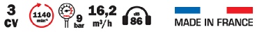 Air restitué à 260 L/min, soit 15,6 m3/h.