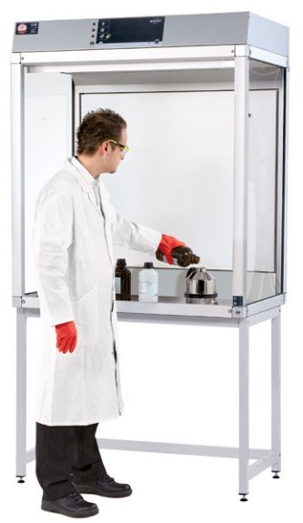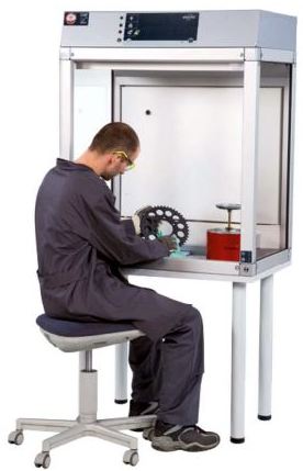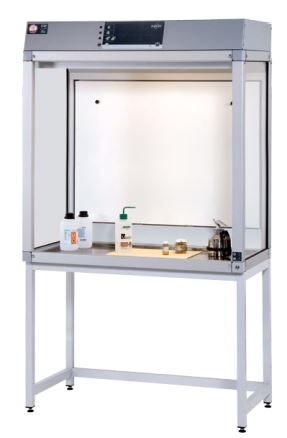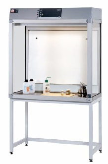 Plan de travail avec des découpes de 400 x 400 mm (acier inoxydable 1.4301 brossé) Socle alu (aluminium anodisé) Prise(s) de courant 2 pièces, 230 V, IP 54, 16 A intégré dans le canal ou goulotte des fluides Prise(s) de courant sortie préinstallée avec conduit de câble intégré dans le canal ou goulotte des fluides Mise à la terre du plan de travail (acier inoxydable) montée sur le profil d’aluminium Châssis comme le rack de pesage avec un bloc de granite pour travail en position assise (panneau mélamine) |