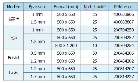 0,8 mm 800 x 1 200 mm 1 x 10 feuilles |