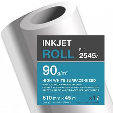 Rouleau de papier surfacé ultra blanc 2545C pour traceur jet d'encre -