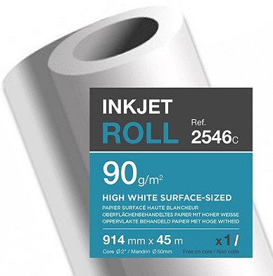 Rouleau de papier surfacé ultra blanc 2546C pour traceur jet d'encre -