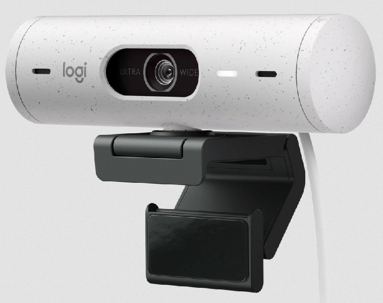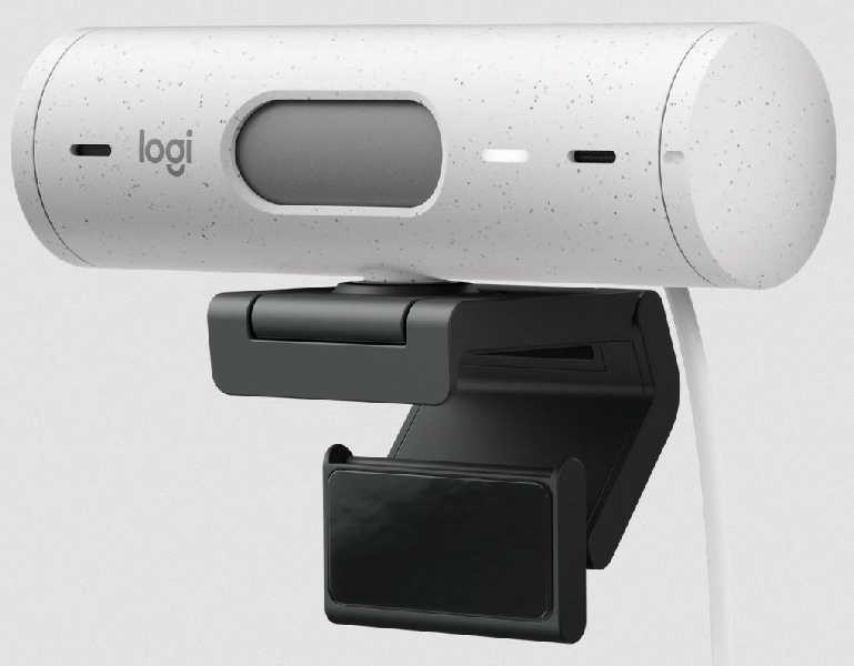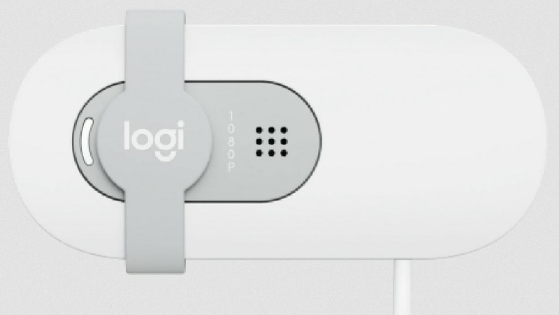 Webcam Full HD 1080p avec équilibrage automatique de l'éclairage, volet de confidentialité et micro intégrés.