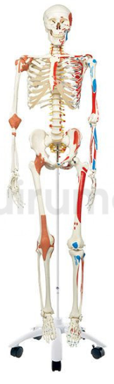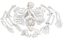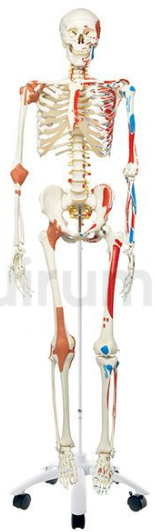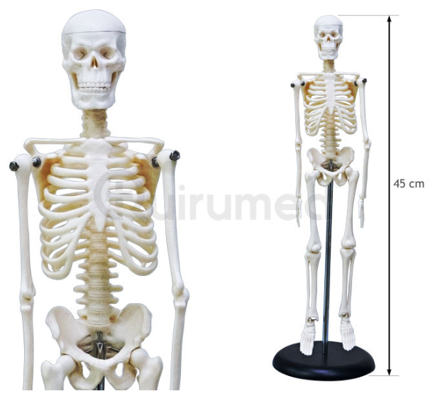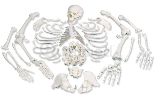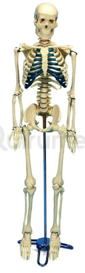Ce modèle est livré avec une main et le pied avec des attaches élastiques pour permettre une étude plus détaillée de chacun des os. En outre, une jambe et le pied sont montés élastiquement. Livré avec support au sol et la poussière.