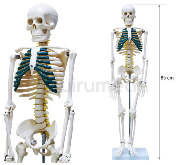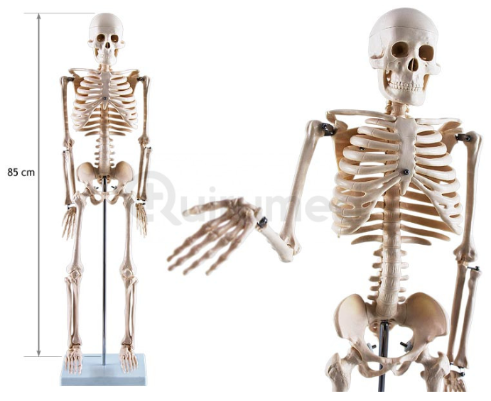 Grâce à son format pratique, ce squelette de petit prix est utilisé pour l’apprentissage et aussi pour la décoration. En plus de l'os musculo-