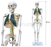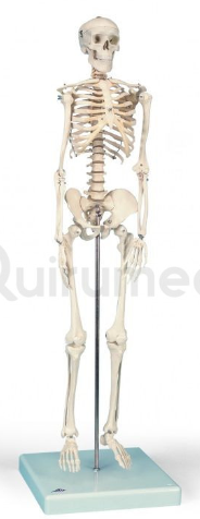 Mini squelette mâle 85 cm conçu comme support visuel pour les cours de physiologie et d'hygiène. Il aide les élèves à comprendre la relation entre la figure du corps humain et le squelette. Il peut également être utilisé pour étudier la morphologie des os et des articulations.