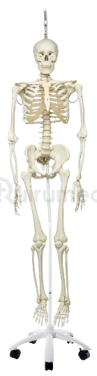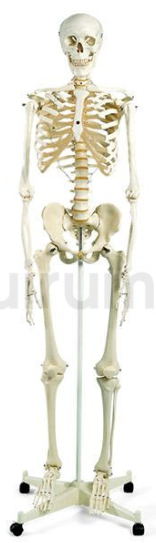 Le squelette humain est unique pour une prise de conscience réaliste de la mécanique à proximité de communes. Cela vous permet de montrer la rotation interne et externe des bras et des jambes et le déplacement et l'extension du genou et du coude. La colonne vertébrale flexible permet les mouvements naturels (inclinaison latérale, de mouvement et extension, rotation). Les os des mains sont montés sur fil de démontrer leur position naturelle. Le montage flexible des os des pieds permet la mobilité. Les pales tournent pendant les bras de levage. Vous pouvez même afficher la faible mobilité de l'articulation sacro-