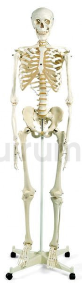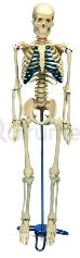 Un squelette masculin adulte en position debout. L'os hyoïde, les osselets d'oreille ne sont pas représentés. Les articulations des extrémités supérieures et inférieures sont mobiles. En plastique PVC.