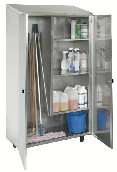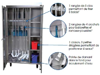 2 portes doublées 1 cloison verticale s’arrêtant à 315 mm du bas 3 petites étagères dont 1 réglable en hauteur |
