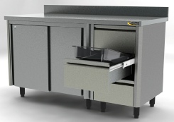 1 porte battante + 1 tiroir (charnières à gauche) |