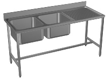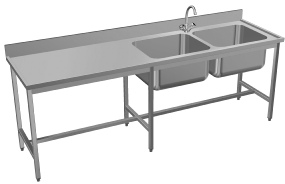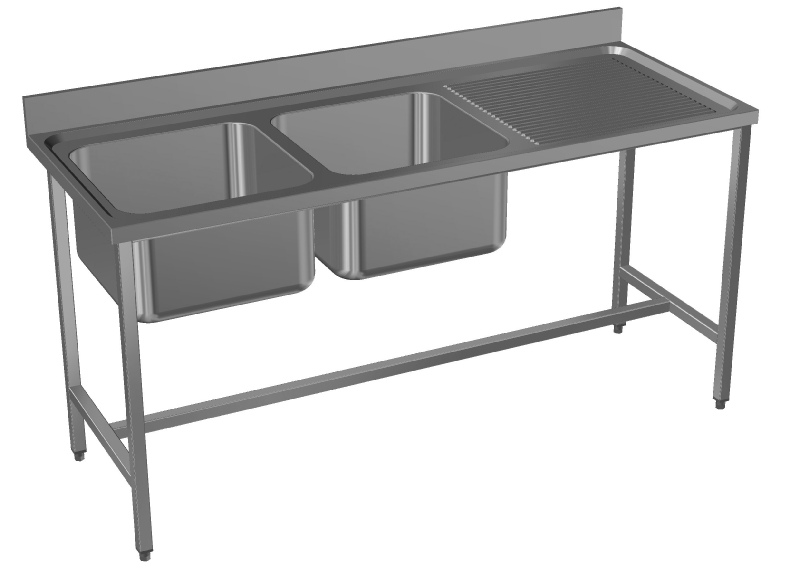 Bac 400 x 400 x 250 soudé (position à préciser à la commande) avec bonde et tube surverse |