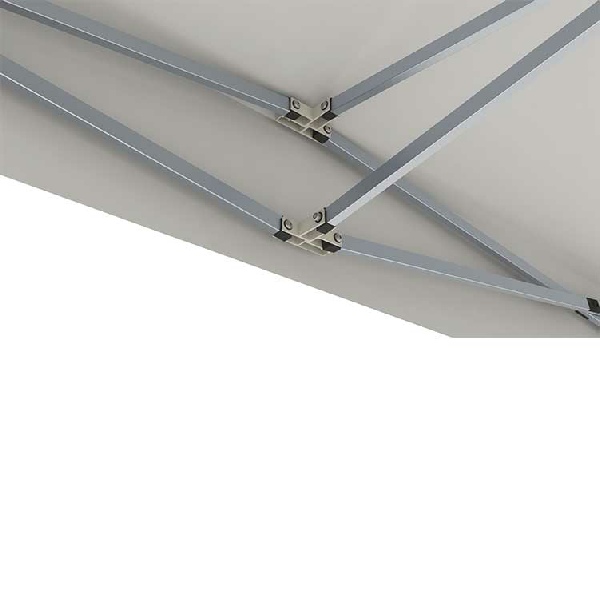 Cette table comptoir peut se fixer facilement aux pieds de la tente pop up grâce à un connecteur en fonte d'aluminium (en option).