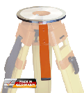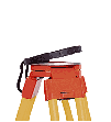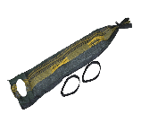 Sac de lestage pour alourdir un trépied. Le sac de lestage et fixé au pied du trépied à l’aide de deux sangles.