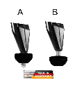 Visser la boule en caoutchouc pour des travaux sur des sols bruts; la pointe de la jambe assure un meilleur ancrage au sol (image A). Dévisser la boule en caoutchouc pour masquer la pointe pour des travaux sur des sols délicats (image B).