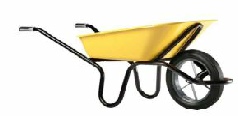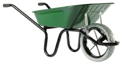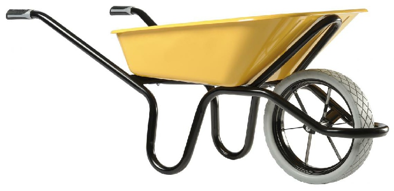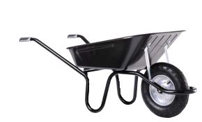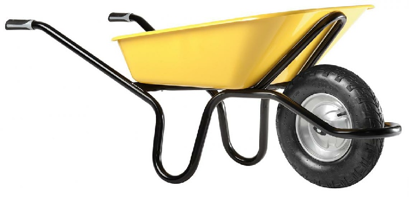 Brouette destinée aux travaux lourds. Charge utile 150 kg. Caisse peinte 100 l, épaisseur 0,9 mm.