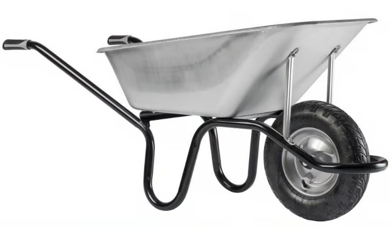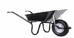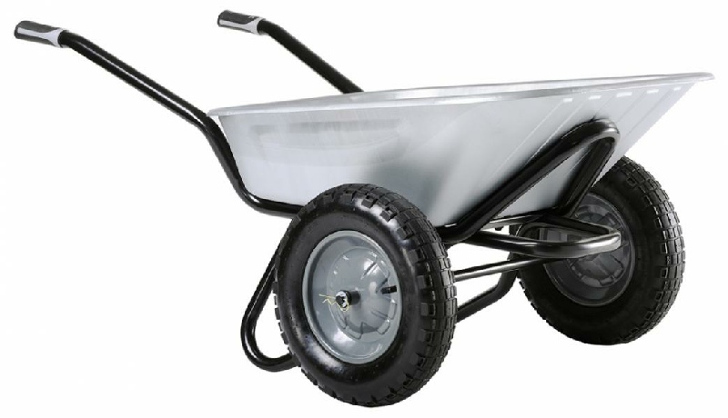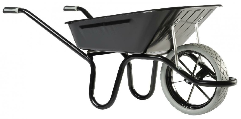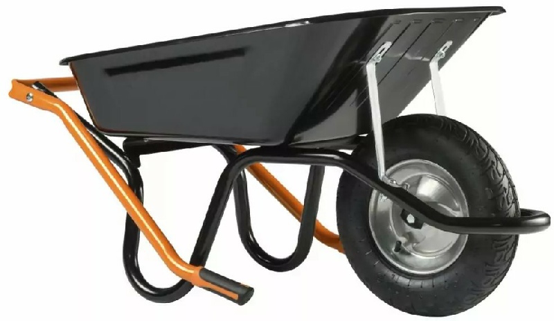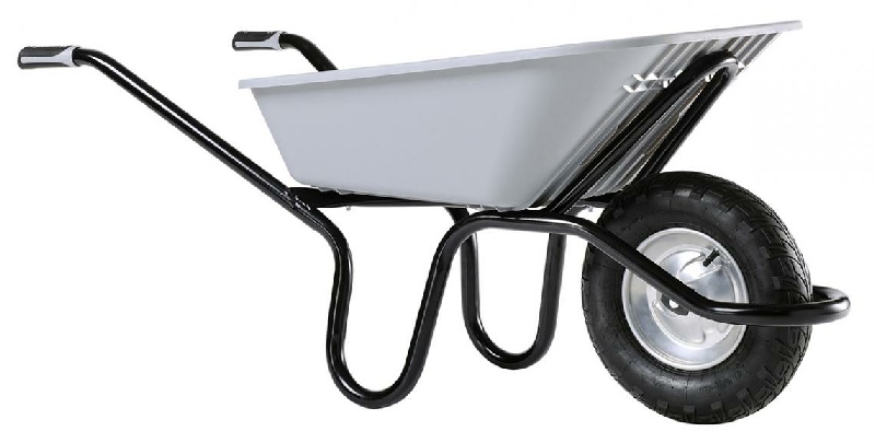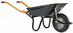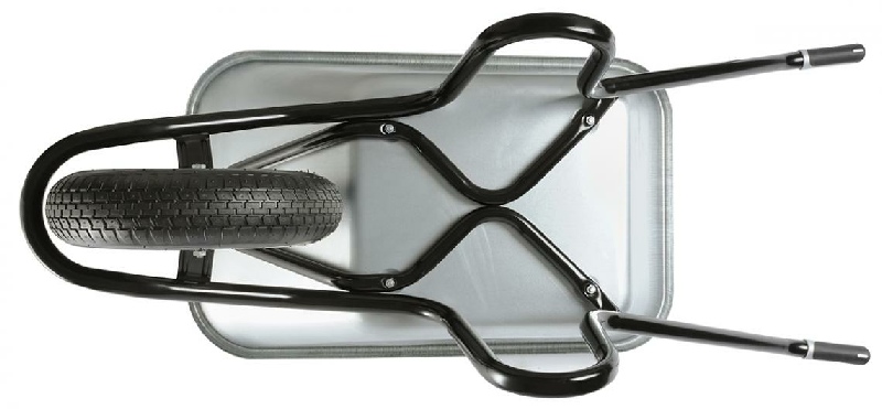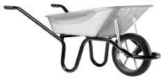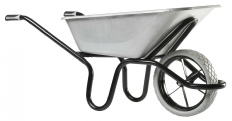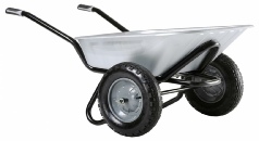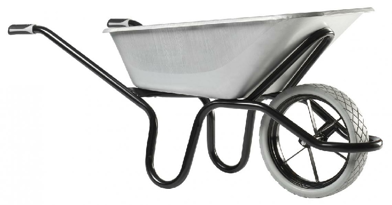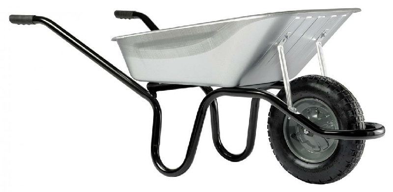 Brouette destinée aux travaux lourds. Charge utile 150 kg. Caisse galvanisée 100 l, épaisseur 0,9 mm.