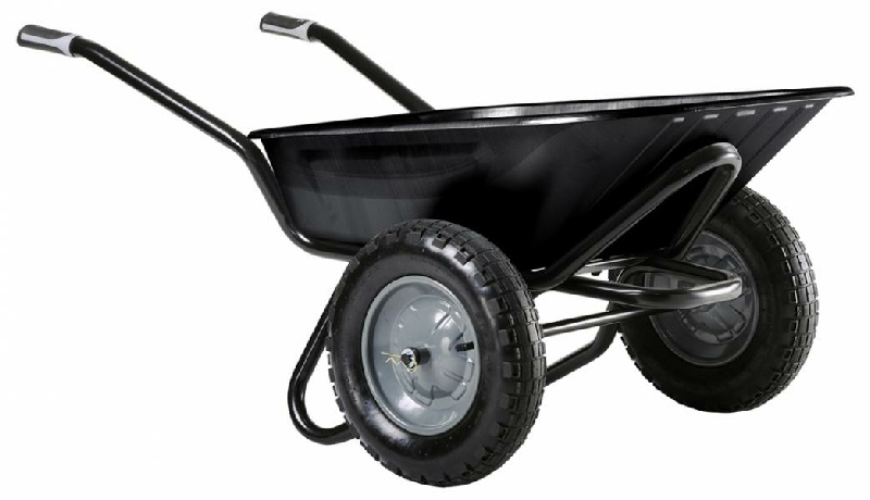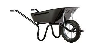 Brouette tous travaux, équipée de 2 roues. Charge utile 150 kg. Caisse peinte 100 l, épaisseur 1 mm, grande contenance. Châssis tube peint Ø 32 mm formant berceau de caisse - Butoir intégré. 2 roues increvables Ø 400 mm (PF 148), jantes métal flasques. Poignées bi-matières. Dimensions : 1270 x 765 x 585 mm. Poids : 13 kg.