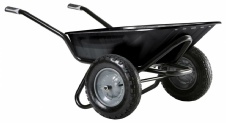 Brouette tous travaux, équipée de 2 roues. Charge utile 150 kg. Caisse peinte 100 l, épaisseur 1 mm, grande contenance. Châssis tube peint Ø 32 mm formant berceau de caisse - Butoir intégré. 2 roues gonflées Ø 380 mm (PF 150), jantes métal flasques. Poignées bi-matières. Dimensions : 1270 x 765 x 585 mm. Poids : 15,2 kg.