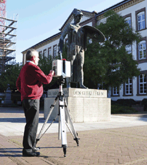 En fonction du poids du scanner à laser 3D, le montage au-dessus de la tête sur le trépied à puits au moyen d’un filet 5/8" est extrêmement difficile. De plus, les platines tripodes de la majorité des scanners à laser 3 D n’acceptent que des contraintes de compression et ne sont pas conçues pour des contraintes de tractions. L’adaptateur en deux parties avec aide au centrage facilite d’un côté le montage au-dessus de la tête du scanner à laser 3D. Parallèlement, une fixation sûre du scanner à laser 3D au trépied à puits est assurée par l’intermédiaire de l’adaptateur directement vissé au raccord 5/8" du scanner à laser 3D et non à la platine tripode. Des adaptateurs pour différents scanners à laser 3D sont disponibles.