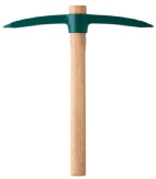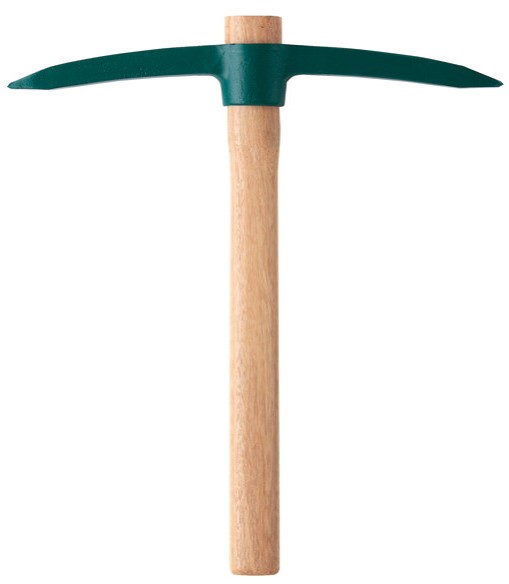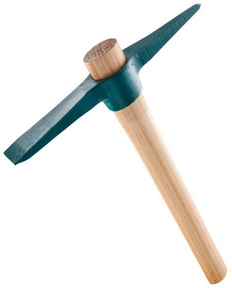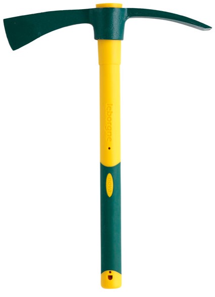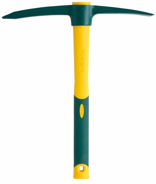 Acier forgé et trempé. Un côté pic. Une panne et une hache pour choisir la position de travail la mieux adaptée.