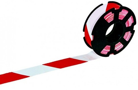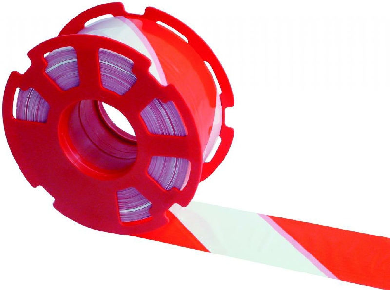 Ruban polyéthylène de très grande qualité. Impression recto / verso avec des encres à l’eau (absence de métaux lourds) de chevrons rouge et blanc alternés en diagonale. Mandrin plastique rouge résistant à l’humidité.