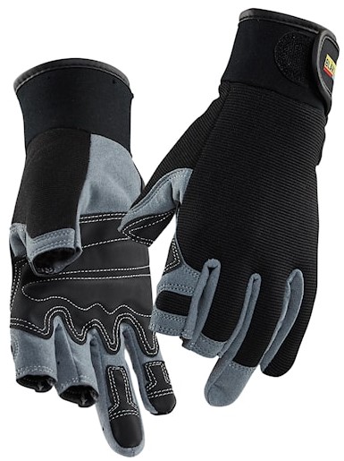 Gant en cuir synthétique avec paume renforcée en caoutchouc et ouverture mitaine sur 3 doigts.