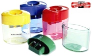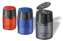 Avec boîte à copeaux colorée et translucide. Taille crayon métallique 2 trous